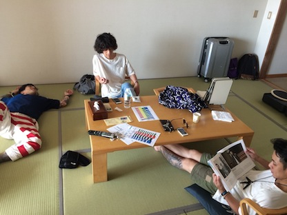 長崎スカイジャンボリーの打ち上げ。本当に久々だったアジカンの二人と、最近ちょいちょい一緒になるフォーリミの二人。