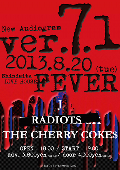 8月20日(火)新代田FEVERにて "New Audiogram ver.7.1" 開催決定!! 出演はJ、FULLSCRATCH、THE CHERRY COKE$の3バンド!! チケットはただいまより先行受付を開始!!