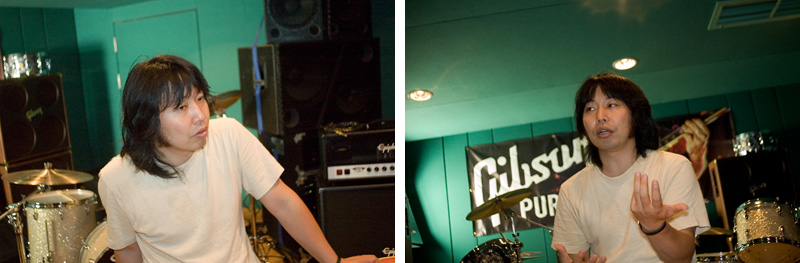 | あぁ。ダブルヴォーカルとかやんなくなるからね、年を取ると。自信が出ちゃって。最初はデモテープとか作ると自分の声が恥ずかしいからダブルにしたリとかね、ごまかしたりするんですけど…。 |