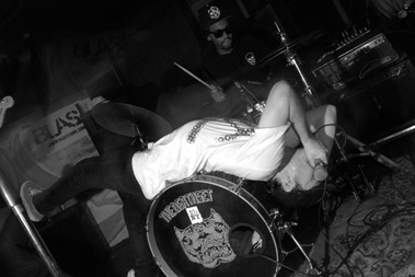 ボルチモアのシーンも面白かったし、特にブルックリンは最高だったよ。ウェアハウスの、アンダーグラウンドでDIYのバンドが盛り上がってた。NINJASONIK、TEAM ROBESPIERRE、JAPANTHERなんかが人気だったよ。健全なアンダーグラウンドのミュージックシーンだったと思う。フィリーはまだ引っ越したばかりだからわからないな。でもフィリーは良いノイズ・シーンをもってると思うよ。でもそれは僕が大好きなシーンではないんだよね。嫌いではないし、好きだけど、ハマってるシーンではないんだ。俺の意見では、アメリカではやっぱりブルックリンとボルチモア、LAの3都市に一番おもしろくて大きなパンクシーンがあると思う。パンクっていうのは、ゴリゴリのあのパンクじゃなくてアンダーグラウンド的なほうね。ブルックリンでは結構いろんなバンドと友達になったよ。NINJASONIK、TEAM ROBESPIERRE、CEREBRAL BALLZYとか。あとフィリーではSPANK ROCK! ボルチモアではPONYTAILとかかな。
