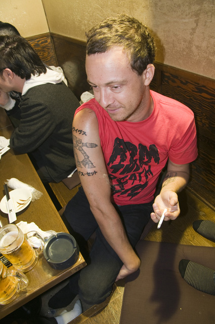 | 最初はリディムの1発目から尋常じゃないテンションだから、これはやばいなと思ったね。デスセットもジャーがいなかったけど、飛行機に間に合わなくて(笑)。そこの段階でまず盛り上がったんだよな。前の日にたぶんジャーが間に合わないぞという話を聞いて、なんかすっげえこのツアーおもしろくなりそうな気がした(笑)。ふたりっきりのライヴもそれはそれでおもしろかったよね。レーベルのビート・レコーズのスタッフもなんかダイヴしてるし、これはますます、このツアーはまちがいなくおもしろくなると思った。俺らはいつもと一緒で気持ちよくやらせてもらったけど。 | |