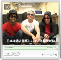 | 名古屋のショウが終わった夜、デスセットのみんながリディムとユアソンに逆に今度はアメリカ来いよって口約束だけど言ってくれて。それは実現したいですね。 | |