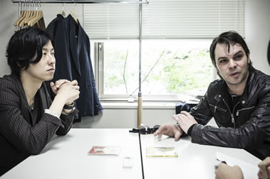 | 今回はバンドのフロントマンでもあり、ギター&ヴォーカルで、しかもメインソングライターで、互いにソロも経験しているという共通点の多い二人にいろいろ伺いたいのですが、まずバンドでの曲作りで大事だと思うことはなんですか? |