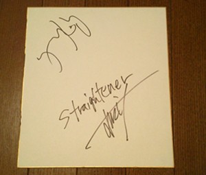 | アリガトウ! 僕も君たちの映像を観せてもらったんだけど、素晴らしいバンドで。君のヴォーカルの力強さに感動したし、バンド全体もプレイも締まっていて、まだCDを聴けてないけど早く聴きたいし、ライヴも観てみたいね。 |