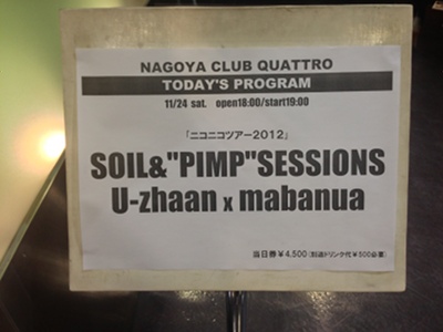 たくさんの素晴らしいミュージシャンと出会い、セッションを重ねて来ましたが、今回のニコニコツアーもまた、そんな僕らの音楽の旅を形にできた企画でした。ここ名古屋で、SOIL&"PIMP"SESSIONS×U-zhaan×mabanuaセッションができた事はまた一つ僕らの音楽が膨らんだ瞬間でもありました。