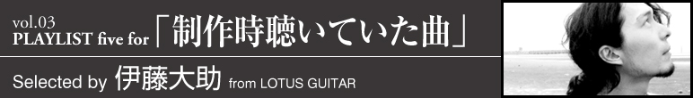 この年齢になるともう何も聴きません(苦笑)、というか若いころはアルバムを作る時、その時に一番表現したい音楽に近いものをよく聴いて参考にしたものですが、それだと時間軸が近過ぎて、その音楽を消化できずに中途半端な形でしか表に出せないことが多々あった気がします。それなりに自分の体内でゆっくりと濾過された音楽のほうが説得力が違いますからね。そうして自分の体内から自然に出てきた音楽を大切に信じてあげるほうが今の僕にとっては大事なこと。基本的に今のpop musicのほとんどは方法論の焼き直しに過ぎないしね(まぁ僕もその焼き直された方法論の上で音楽を作っている身ではあるけど……苦笑)。ここに出した曲は昔よく聴きていた音楽です。多分価値観的には今回のアルバムと同じベクトルの上にあるとは思います。