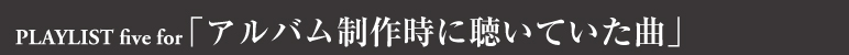 制作の合間に、スタジオでよく聴いていた曲。普段クラブで聴く機会がほとんどない、メジャーなヴォーカルものは特に意識して聴いていました。あとは、アルバムのトータルコンセプトにも影響した曲、とにかく好きでかけてた曲など。