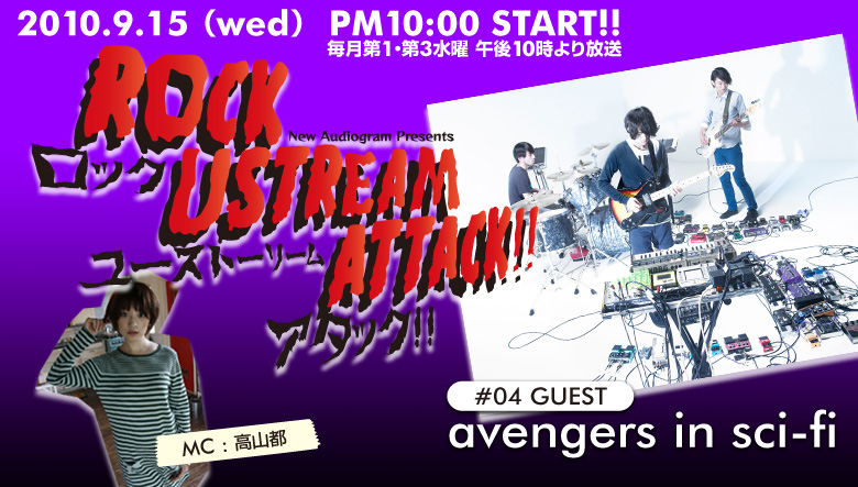 New AudiogramによるUSTREAMプログラム『ROCK USTREAM ATTACK!!』では、毎回ゲストにミュージシャンを招き、お酒を飲みながらゆるいトークを繰り広げます。司会はモデル・タレントの高山都。ロック好きの彼女ならでは切り口でゲストにガンガン迫っていきます。
